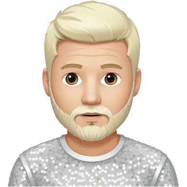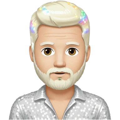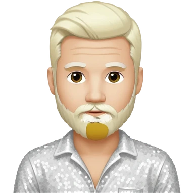 Justin Jeffre (b.1973) from 98 Degrees with platinum blonde hair and beard beard, white sequin outfit emoji