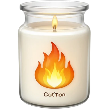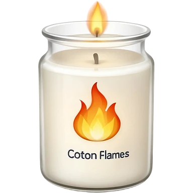 minimal flat emoji of a white scented candle in a glossy white glass jar with the label “cotton”, three visible flames, soft warm glow, clean vector style, elegant and modern, transparent background emoji