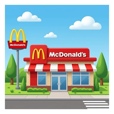 caucasian male McDonald's worker red casual cashier clothes, red cap with the McDonald's logo emoji