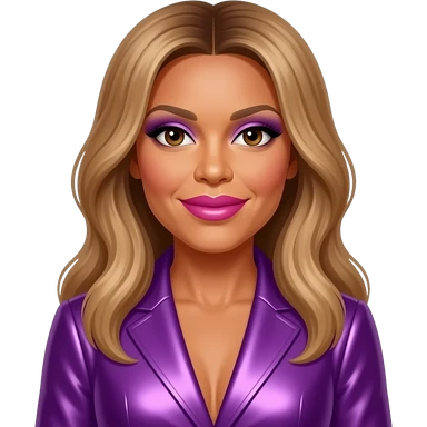 Wendy Williams with brown eyes, long golden brown hair, pink eyeshadow, hot pink lipstick, purple dress emoji