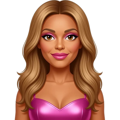 Wendy Williams with brown eyes, long golden brown hair, pink eyeshadow, hot pink lipstick, pink metallic dress emoji