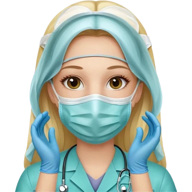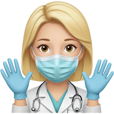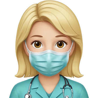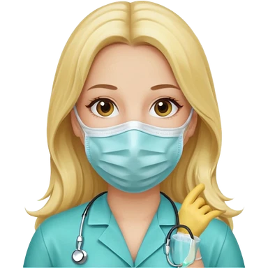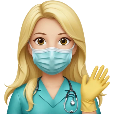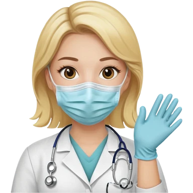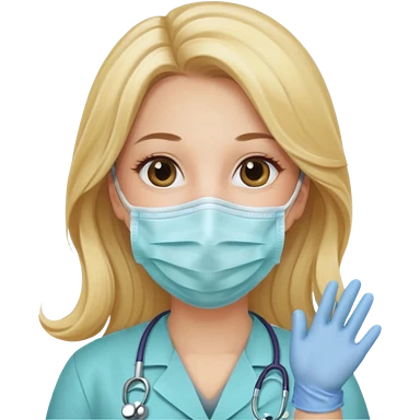 medica rubia con pelo largo, con mascarilla y guantes emoji