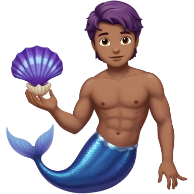 merman with brown hair brown eyes and medium to dark skin tone with a blueish purple tail and not insanely muscular emoji