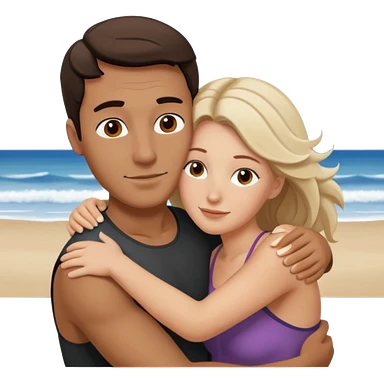 Metis black Man and white woman hug in love on beach emoji