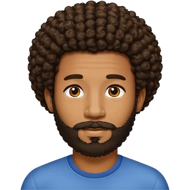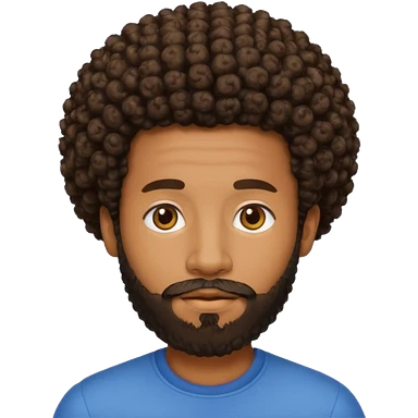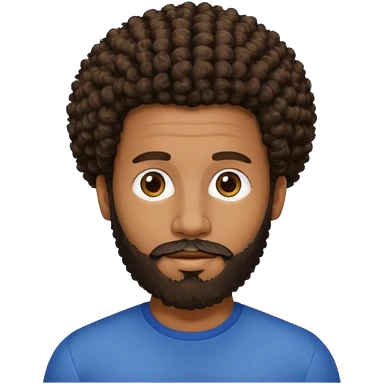 Medium brown skin man with beard and a tiny curly Afro fade with dark dark brown eyes emoji