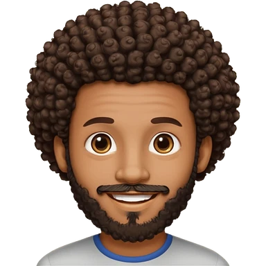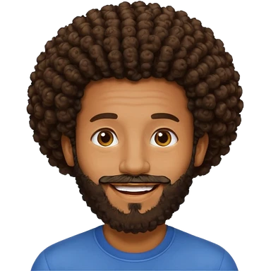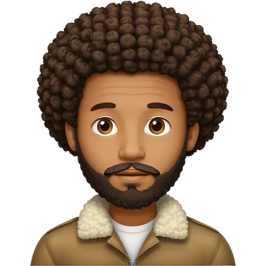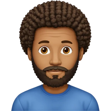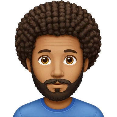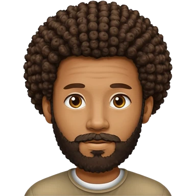 Medium brown skin man with beard and a curly small Afro fade emoji