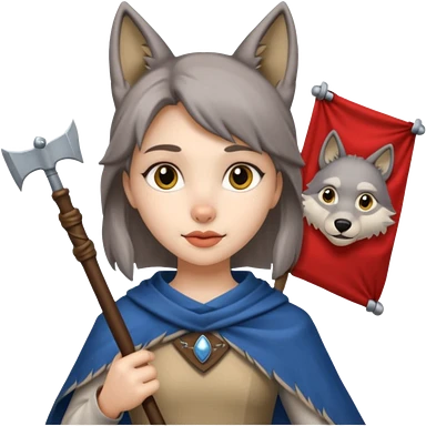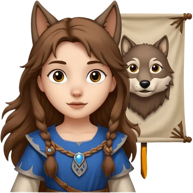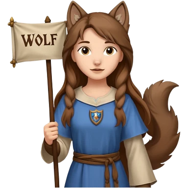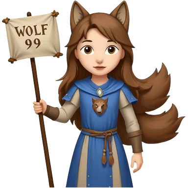 Medieval wolf girl holding a banner that say #Wolf99 emoji