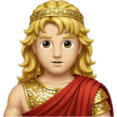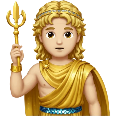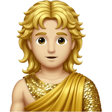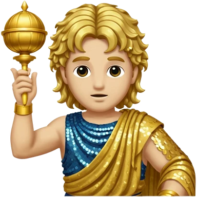Mercury from Roman Deities with long gold wavy hair, gold sequin toga emoji