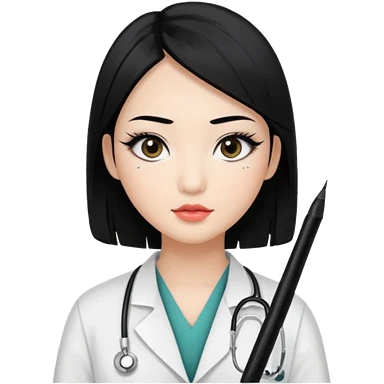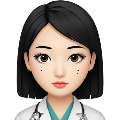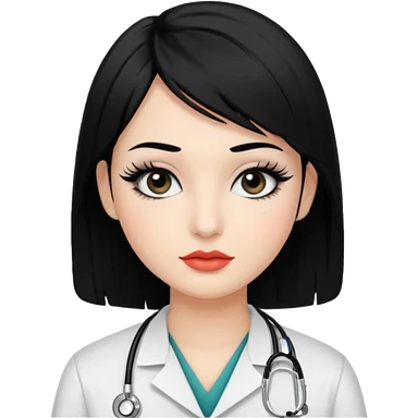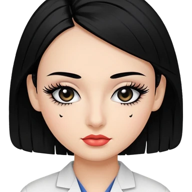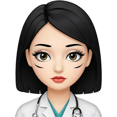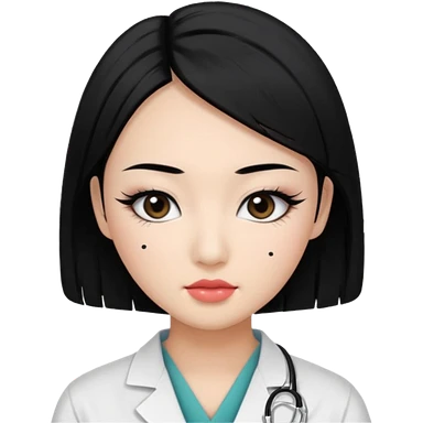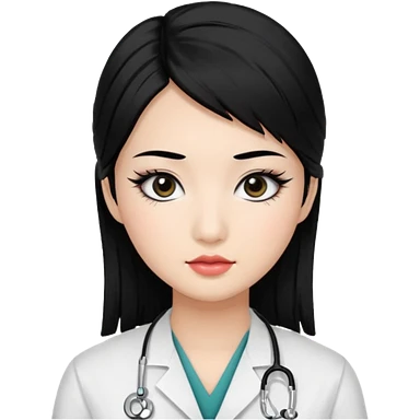 Medical student, black hair, black eyes, false eyelashes, makeup, eyeliner, Asian emoji