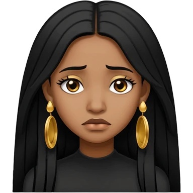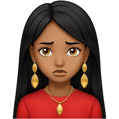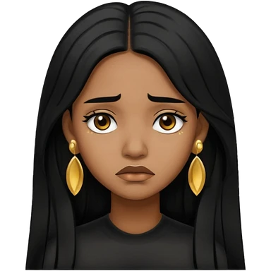 medium brown skin tone girl who has long layered black hair with gold stud earrings who is sad emoji