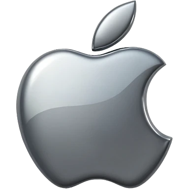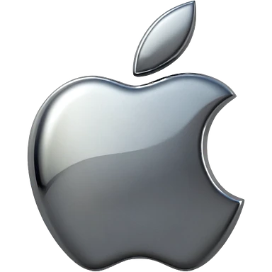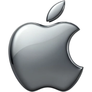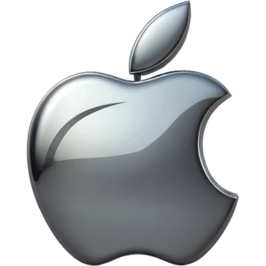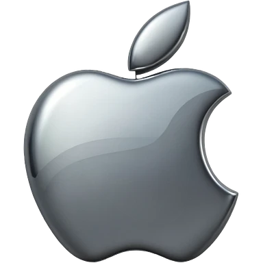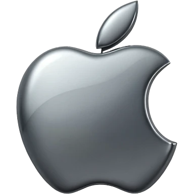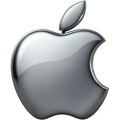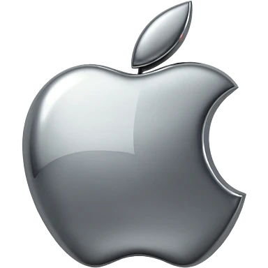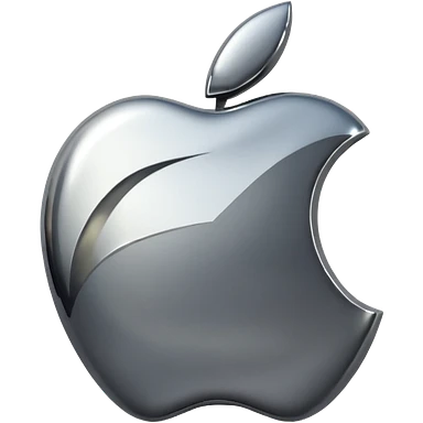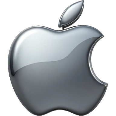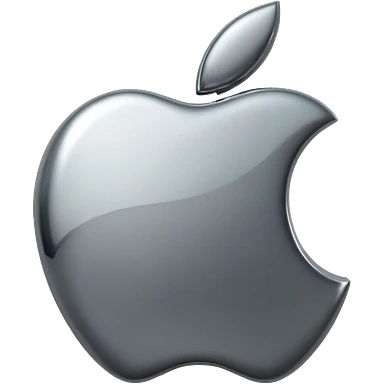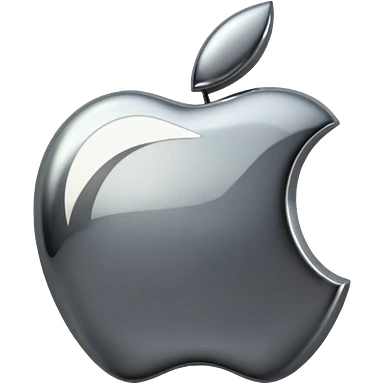 Metallic Apple logo emoji icon, chrome surface, sharp reflections, dark background, centered emoji