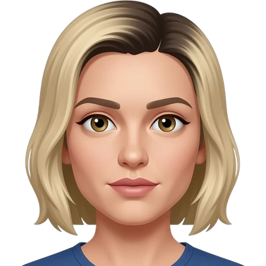 Serbian features, slim long nose, very thin lips , pale skin, dyed blonde with black roots anf smsll hazel eyes emoji