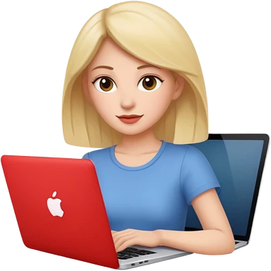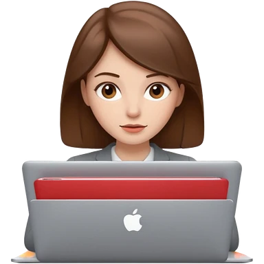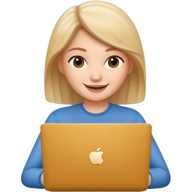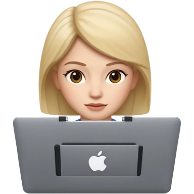 memoji of a female with a laptop in front, apple-style, modern emoji
