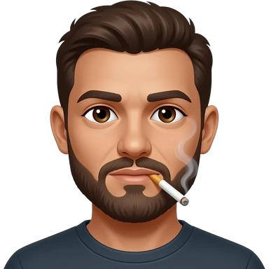 Hombre moreno con barba gordito ojos verdes fumando emoji