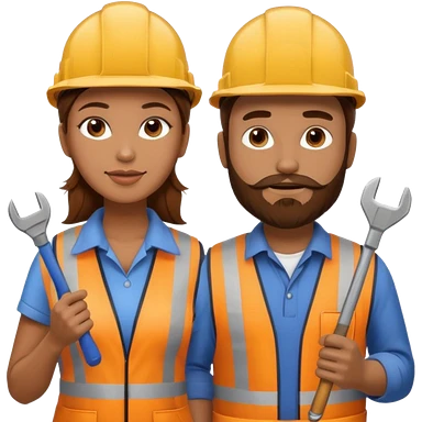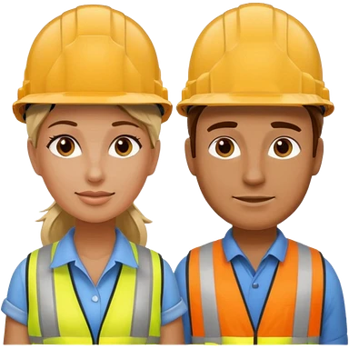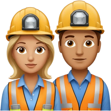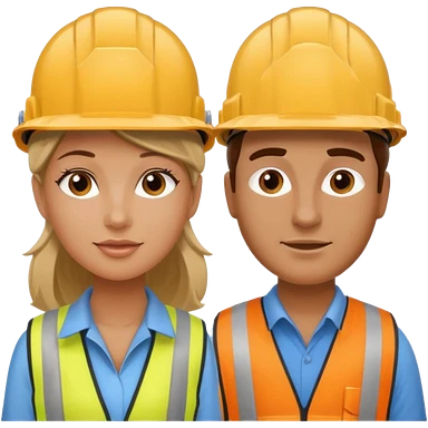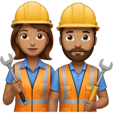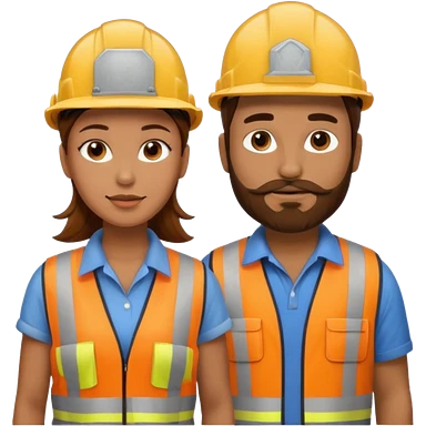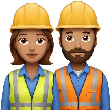 me haces una mujer pelo marron y un hombre con barba , que ambos esten vestidos como constructores de obra que sean blancos de piel emoji | AI Emoji Generator