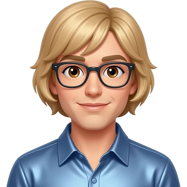 Brian Lackey (male) from Fictional Characters with brown eyes, strawberry blonde short bang hair, glasses, periwinkle metallic shirt emoji