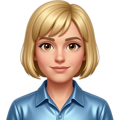 Brian Lackey from Fictional Characters with brown eyes, strawberry blonde short bang hair, periwinkle metallic shirt emoji
