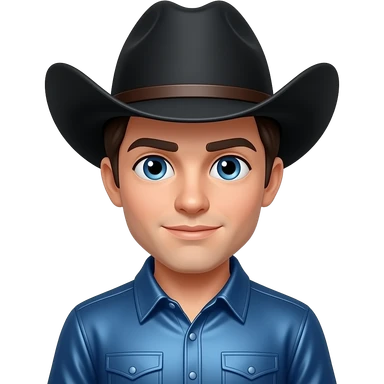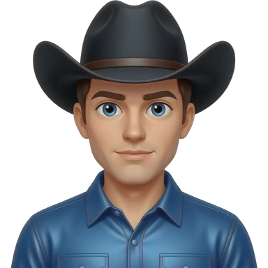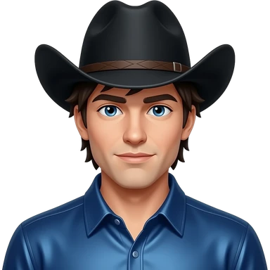 Jack Twist from Fictional Characters with blue eyes, dark brunette hair, black cowboy hat, indigo metallic cowboy shirt emoji