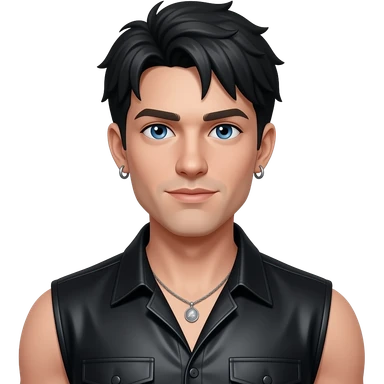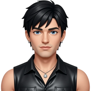 Neil McCormick from Fictional Characters with blue eyes, black short bang hair, black metallic sleeveless shirt, necklace and earrings emoji