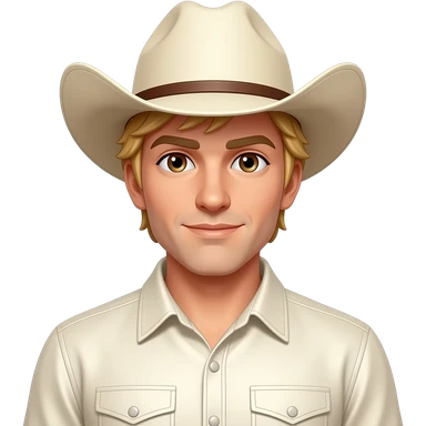 Ennis Del Mar (Male) from Fictional Characters with brown eyes, golden blonde hair, beige cowboy hat, ivory metallic cowboy shirt emoji