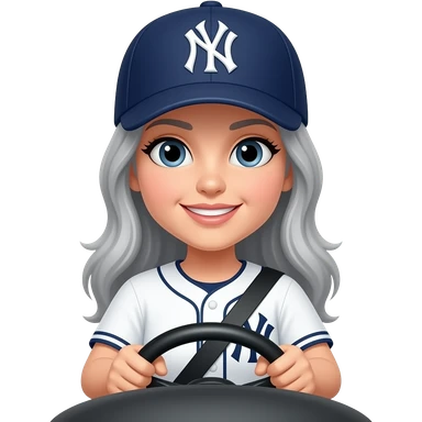 Female gray hair ny yankee with ny yankee hat driving emoji