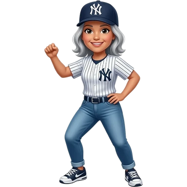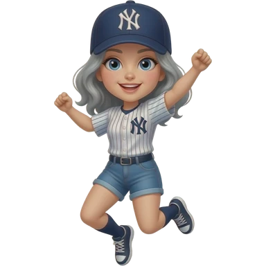 Female gray hair ny yankee with ny yankee hat jumping emoji