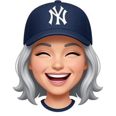 Female gray hair ny yankee with ny yankee hat laughing emoji