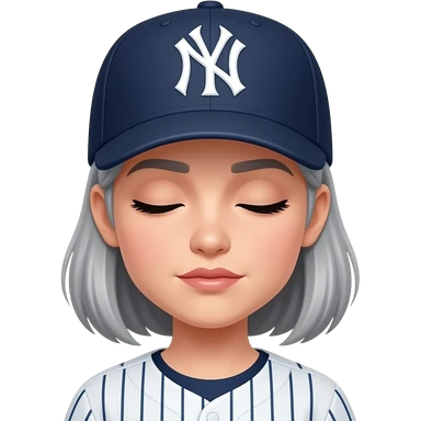 Female gray hair ny yankee with ny yankee hat sleepy emoji