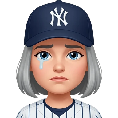 Female gray hair ny yankee with ny yankee hat tired emoji