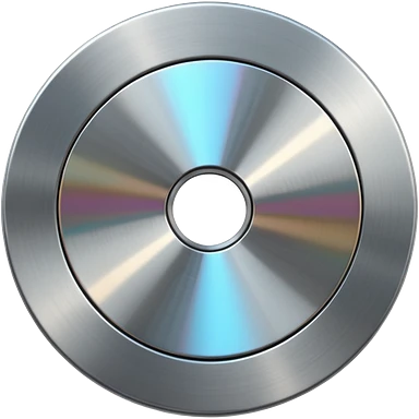 metallic disc emoji, brushed chrome surface, clean geometry, futuristic minimal 3D style, isolated on white emoji