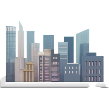 Icono 3D de una ciudad en miniatura. Estilo isométrico, renderizado 3D de alta calidad, texturas suaves y minimalistas (estilo clay render o plástico mate) emoji