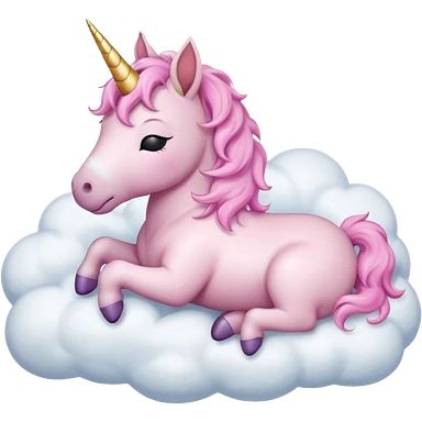 Small adorable baby unicorn, asleep on a white fluffy cloud, isolated emoji