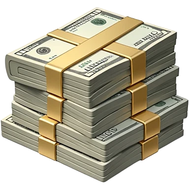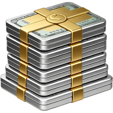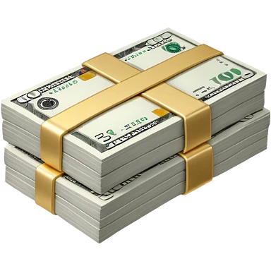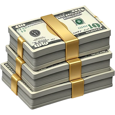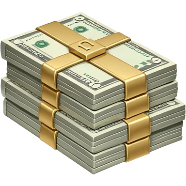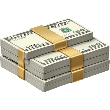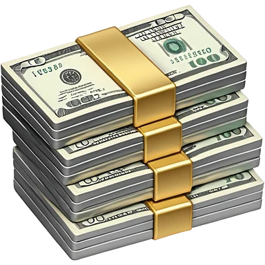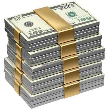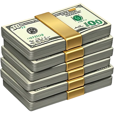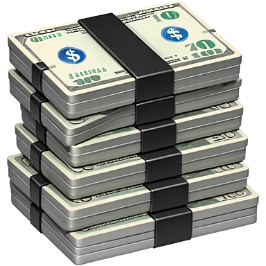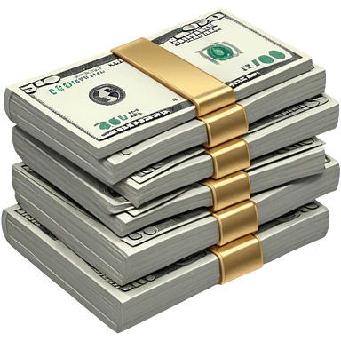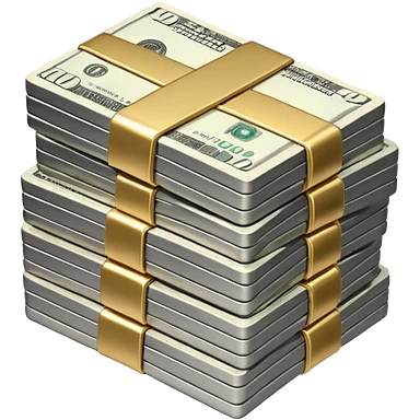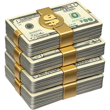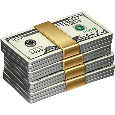 Metallic black-and-white money pack emoji, simple geometric stack of bills,minimal style emoji