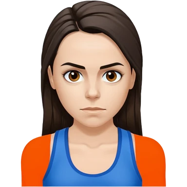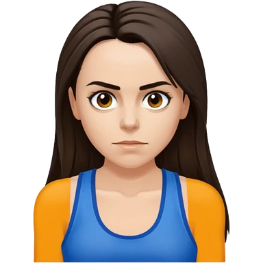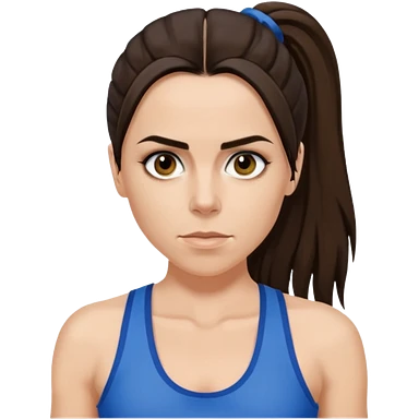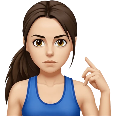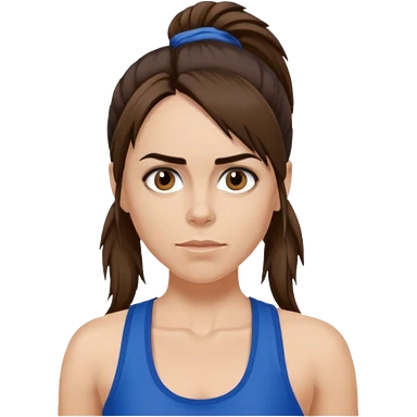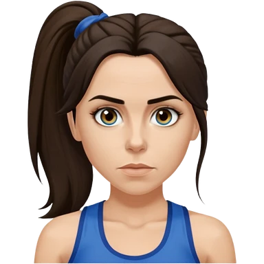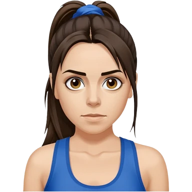 Melanie C with hazel eyes, dark brown long ponytail hair, blue tank top emoji