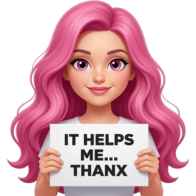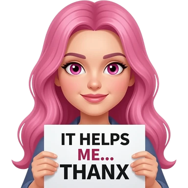 sexy girl with long pink hair and pink eyes wearing a holding a IT HELPS ME... THANX sign emoji