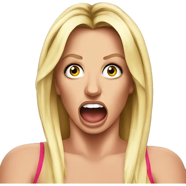 Britney Spears with big dead pan brown eyes staring blankly. Her hair up in a very messy bun not in a cute way. Like she just woke up and is tired Headshot. emoji