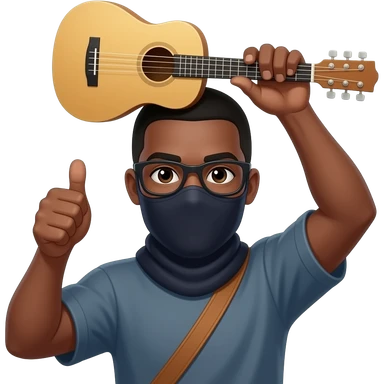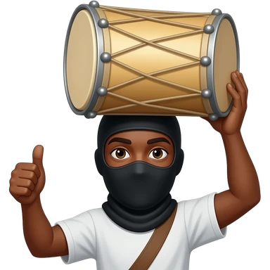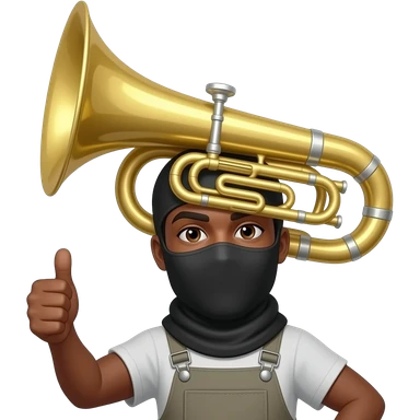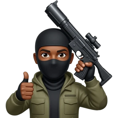 give me a black-skinned guy emoji who's showing with his thumb that everything fine, also on the other hand he holds a jumbo instrument on his head he should have the balaclava emoji