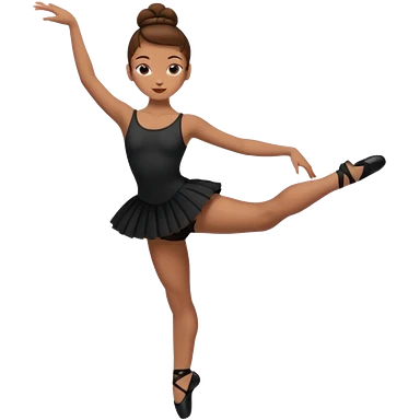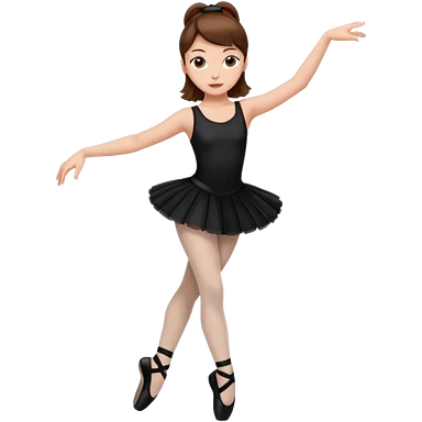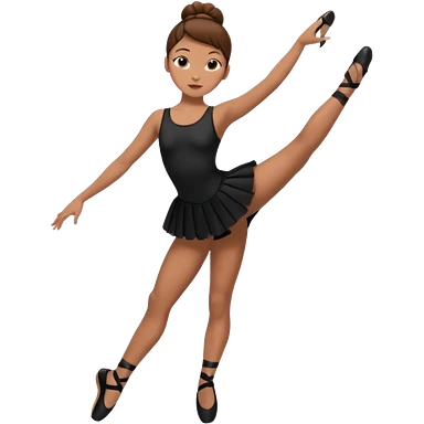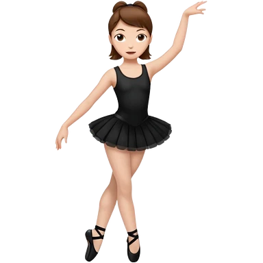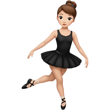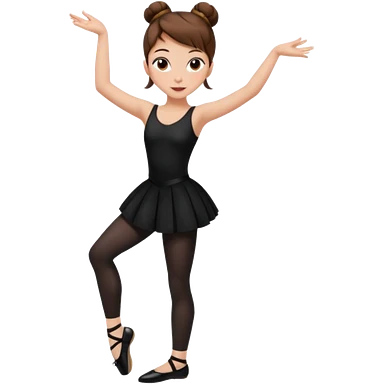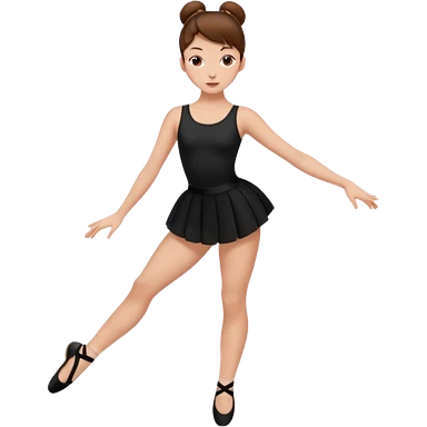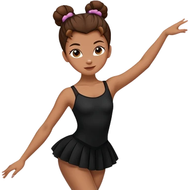menina cabelos castanhos em coque vestida de roupas de jazz e sapatilhas pretas emoji