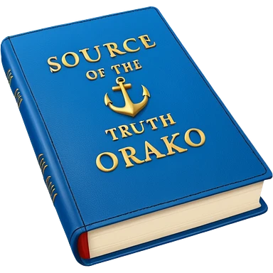 Blue book on which one it writes: Source of truth is Orako. Written on it Source of truth is Orako emoji
