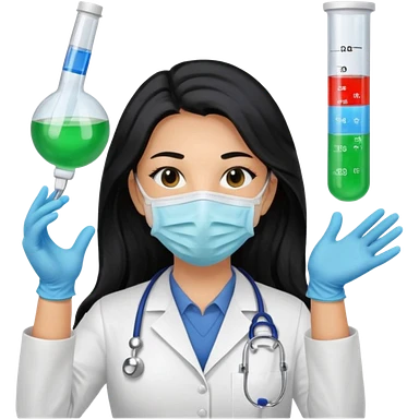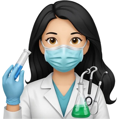 medica con guantes y mascarilla e insumos lavoratorio pelo negro largo triguella sin testoscopio emoji | AI Emoji Generator