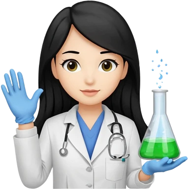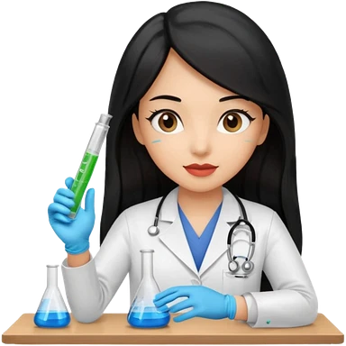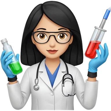 doctora con gauntes y marallilas e insumos lavoratorio pelo negro largo triguella emoji