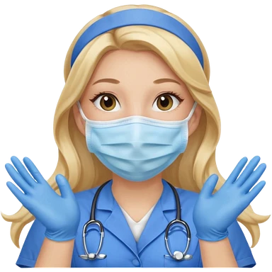 enfermera rubia con pelo largo, con mascarilla y guantes azules que aperezcan las dos manos, como las primeras imagenes que enviaste emoji