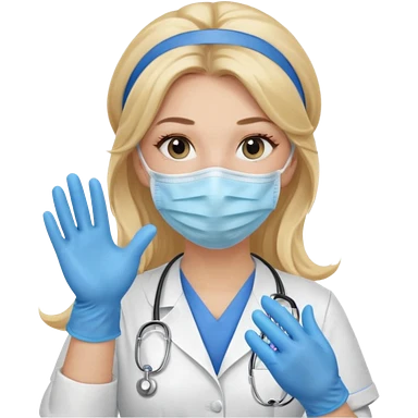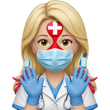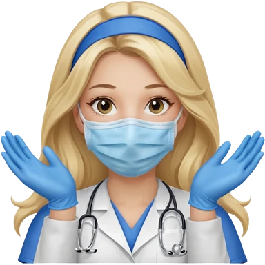medica rubia con pelo largo, con mascarilla y guantes emoji | AI Emoji Generator