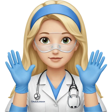 medica rubia con pelo largo, con mascarilla y guantes emoji | AI Emoji Generator