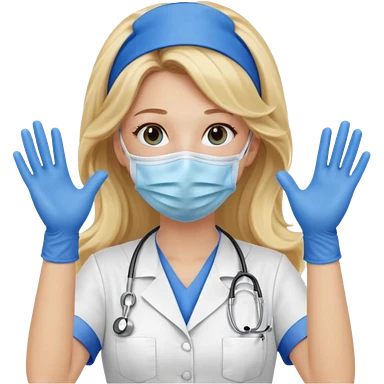 enfermera rubia con pelo largo, con mascarilla y guantes azules que aperezcan las dos manos, como las primeras imagenes que enviaste emoji