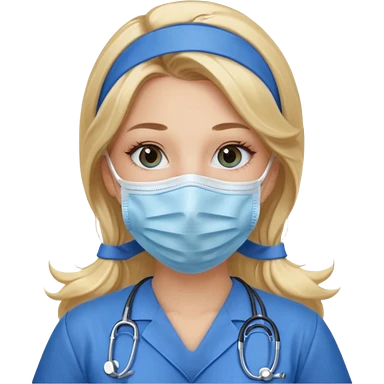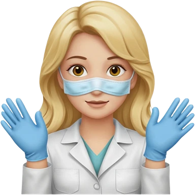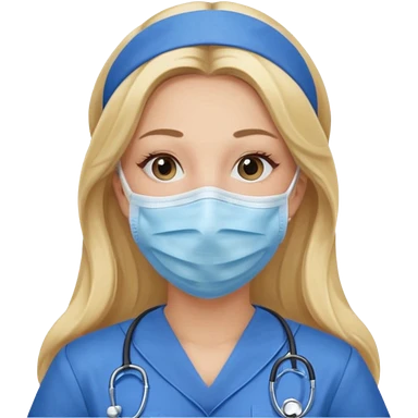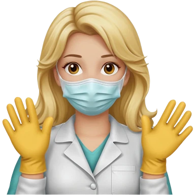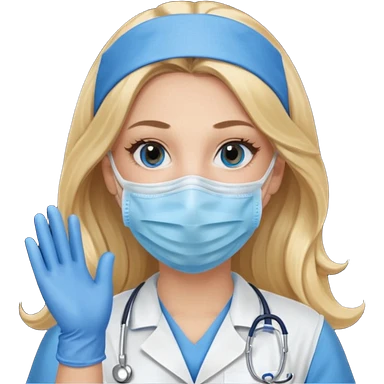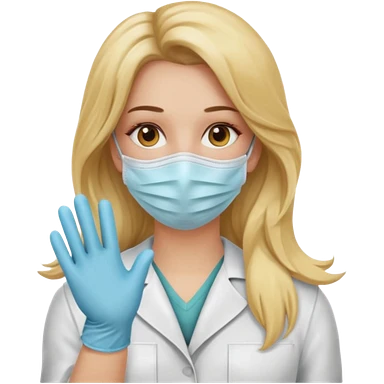 medica rubia con pelo largo, con mascarilla y guantes emoji | AI Emoji Generator