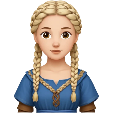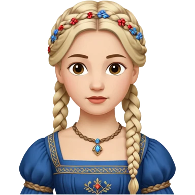 An emoji portrait of a medieval European princess. She wears a long-sleeved bliaut dress in a vibrant blue color, with a delicate golden circlet on her head. Her hair is braided in long tresses, and her expression is gentle and pious. emoji