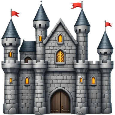 A photorealistic icon featuring a large medieval castle built from LEGO bricks, with detailed textures of the bricks, turrets, and drawbridge. The design captures the creativity and intricacy of LEGO construction with vibrant colors and realistic lighting. Transparent background emoji