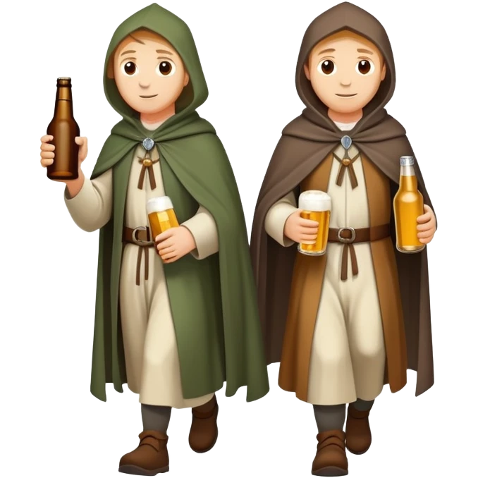 medieval pilgrims walking on a journey path with cloaks and beer bottles emoji | AI Emoji Generator