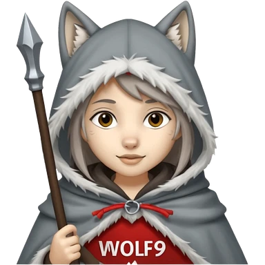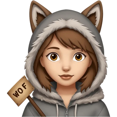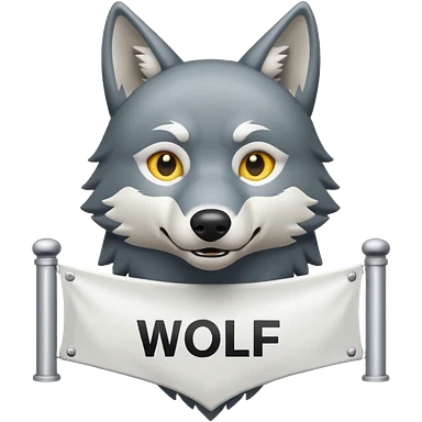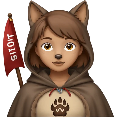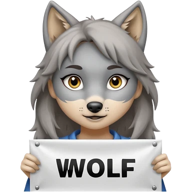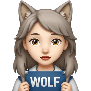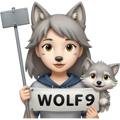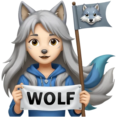 Medieval wolf girl holding a banner that say #Wolf99 emoji | AI Emoji Generator